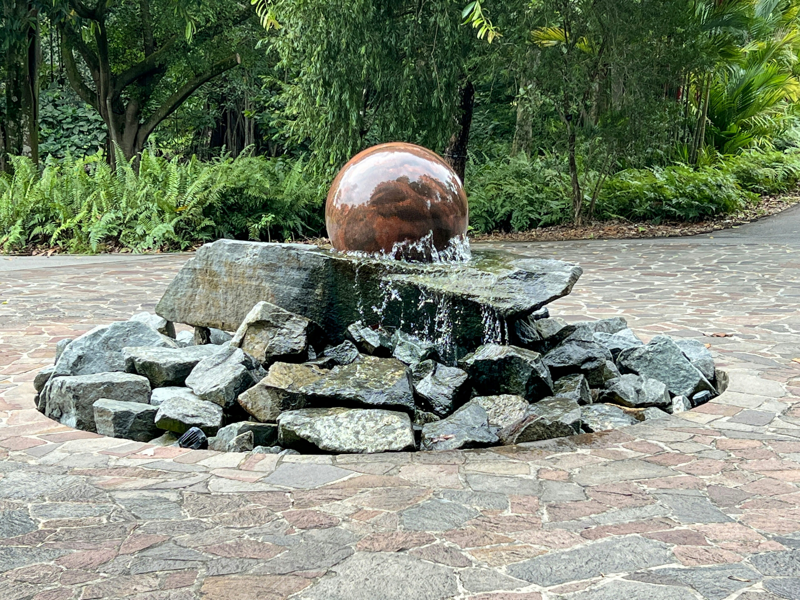 A rotating granite Feng Shui sphere balances energy in homes or offices. Carved from a single block, its polished surface symbolizes stability. Place near entrances or water features for harmony.