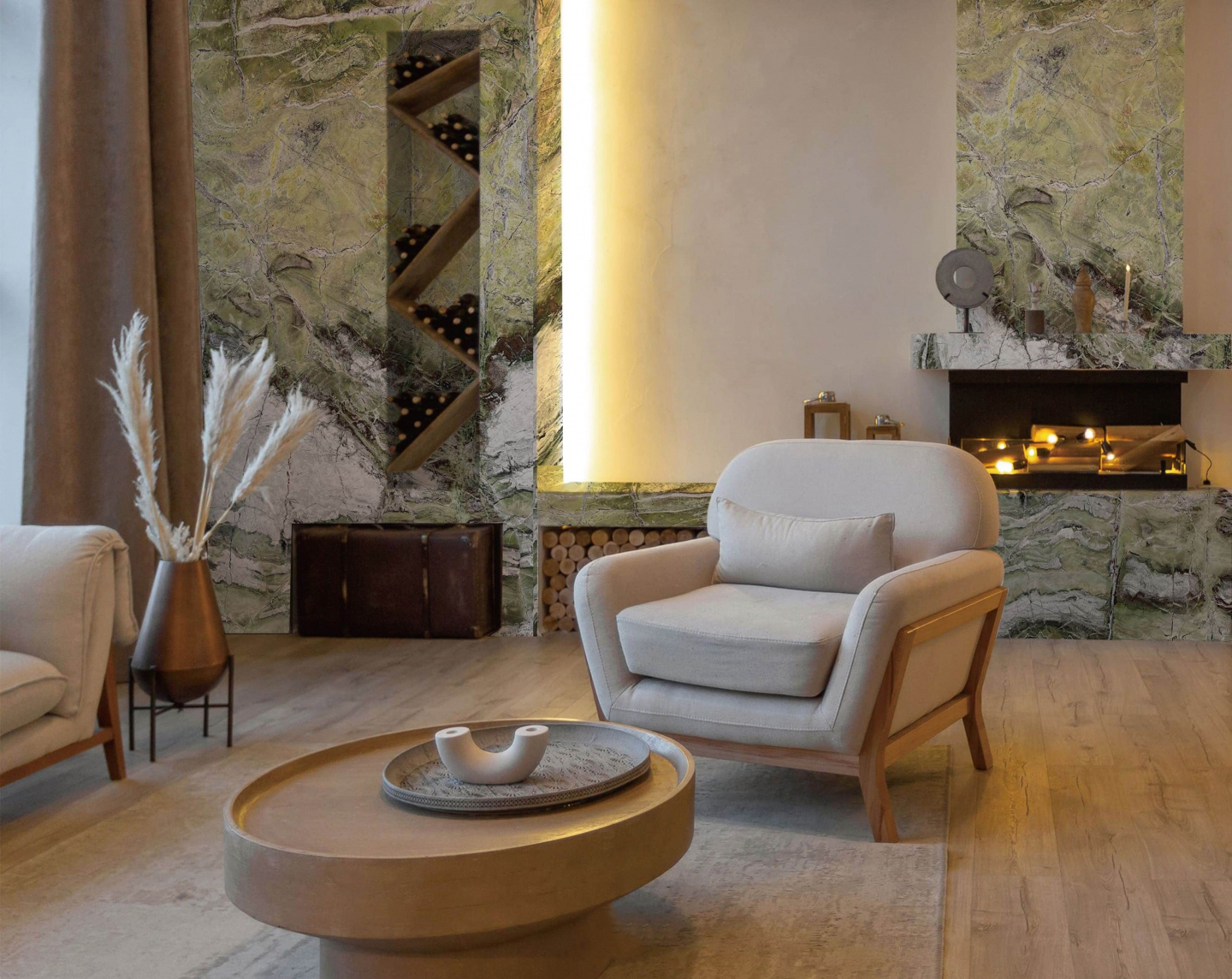 Cladding panels of Exotic Green or Coral Stone, finished with textured reliefs or high-gloss epoxy. Resistant to chemicals and impact, they redefine high-end kitchens, spa walls, or yacht interiors.